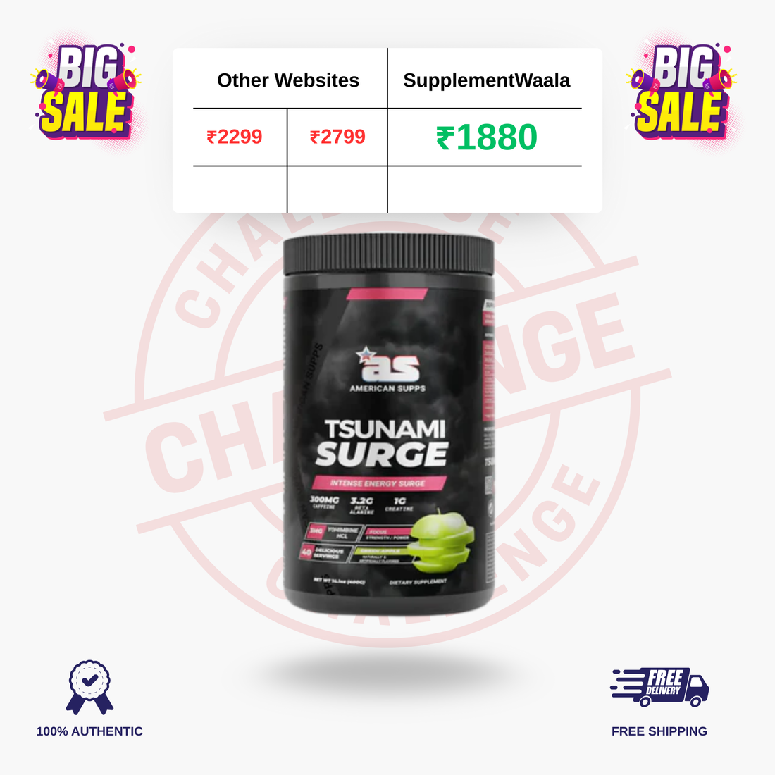 TSUNAMI SURGE Pre-Workout – Intense Energy Surge Tsunami Surge by American Supps is a high-performance...