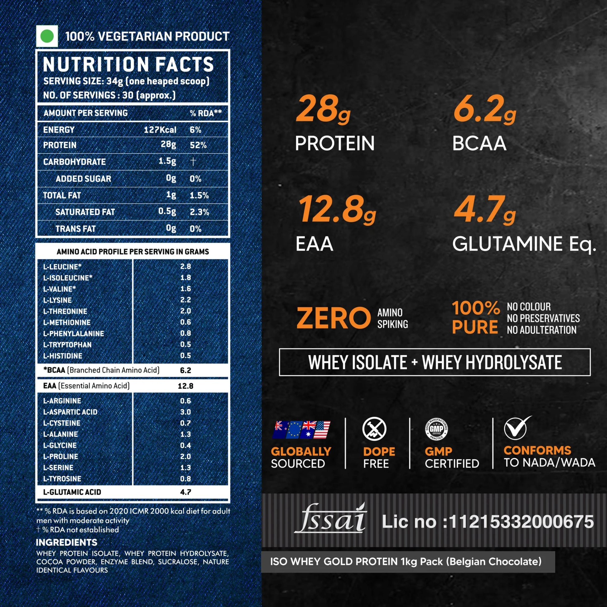 Formulated for athletes, bodybuilders, and fitness enthusiasts, this supplement supports rapid protein synthesis, enhanced muscle recovery, and greater strength gains. Blended with an enzyme complex for better digestion and nutrient absorption, ISO Whey Gold is manufactured in a GMP-certified facility and 3rd-party lab-tested for purity and potency.