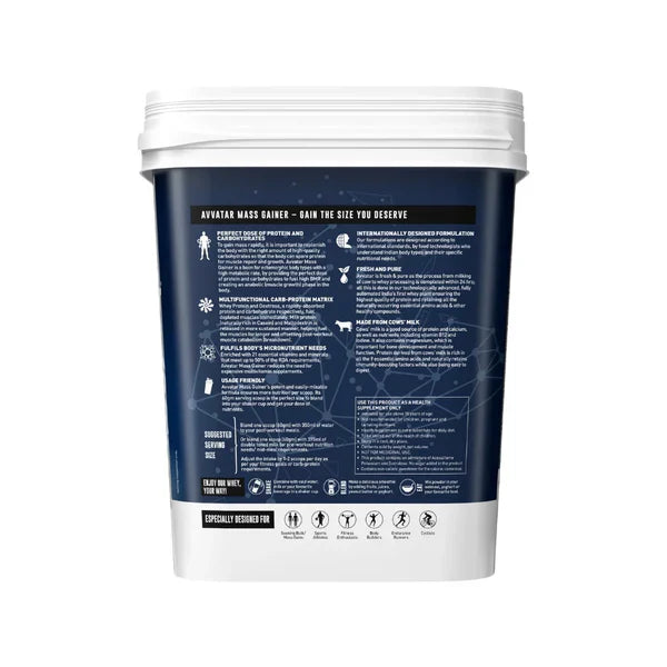 Struggling to put on weight despite consistent efforts? Avvatar Mass Gainer is your ultimate high-calorie solution, specially designed for hard gainers and fitness enthusiasts. Packed with the ideal blend of protein, complex carbohydrates, and essential nutrients, it supports weight gain, muscle recovery, and strength building when combined with proper exercise.