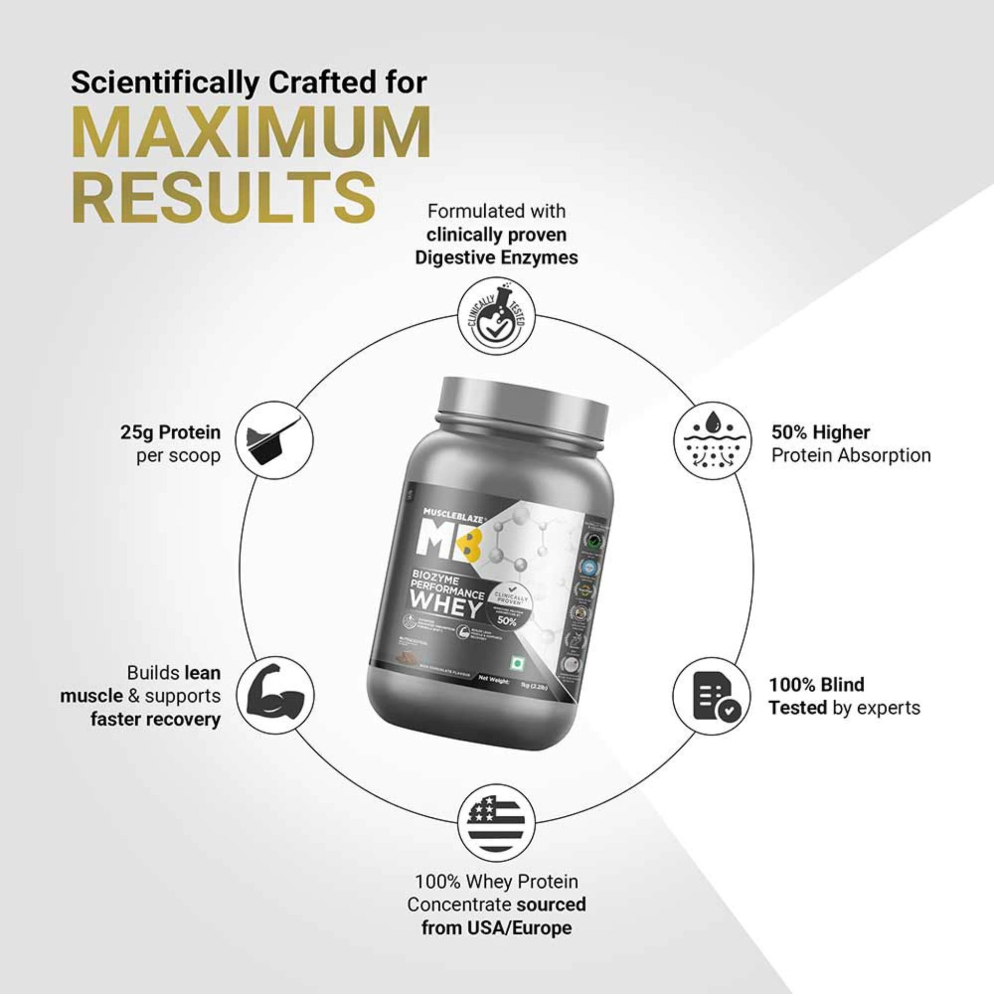MuscleBlaze Biozyme Performance Whey Protein – Clinically Tested for Superior Absorption & Muscle Gains