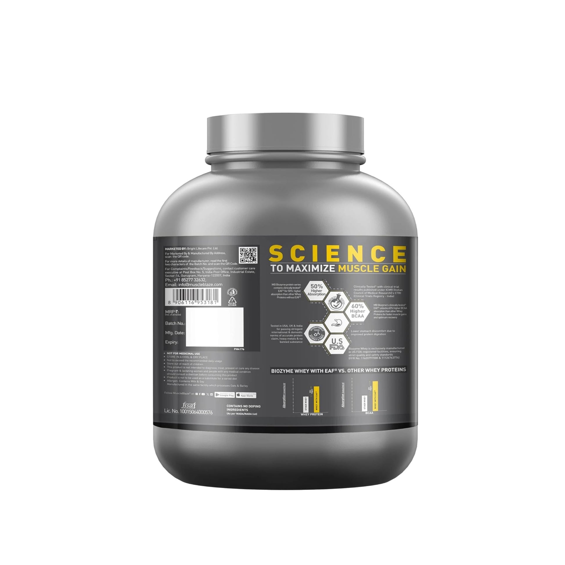 With MB’s patent-applied EAF® technology, Biozyme Whey delivers more usable protein per scoop—supporting lean muscle growth and better recovery.