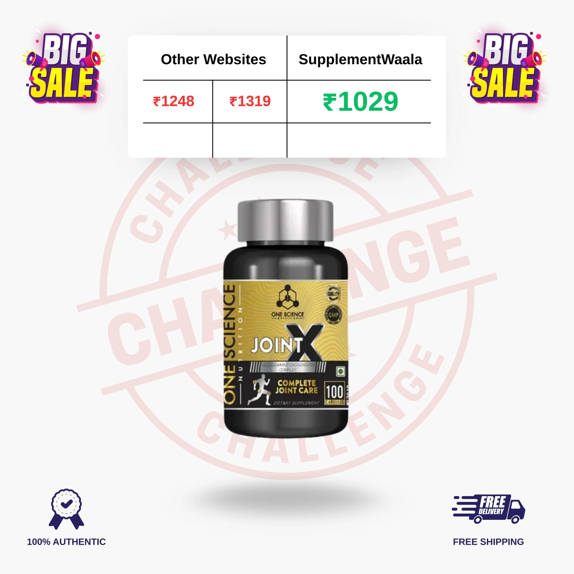 One Science Nutrition (OSN) JointX is a scientifically crafted joint support supplement designed to promote flexibility, mobility, and long-term joint health. Powered by a synergistic blend of Glucosamine, Chondroitin, and MSM, JointX supports cartilage regeneration, reduces joint discomfort, and enhances bone function for an active and pain-free lifestyle.