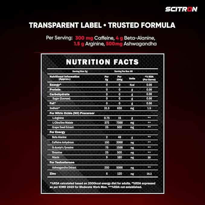 The blend of VitaCholine and Senactiv provides a smooth onset of mental energy, keeping you focused and energized during intense activity without sudden crashes. For optimal results, consume ABE pre-workout powder 15 minutes before training.