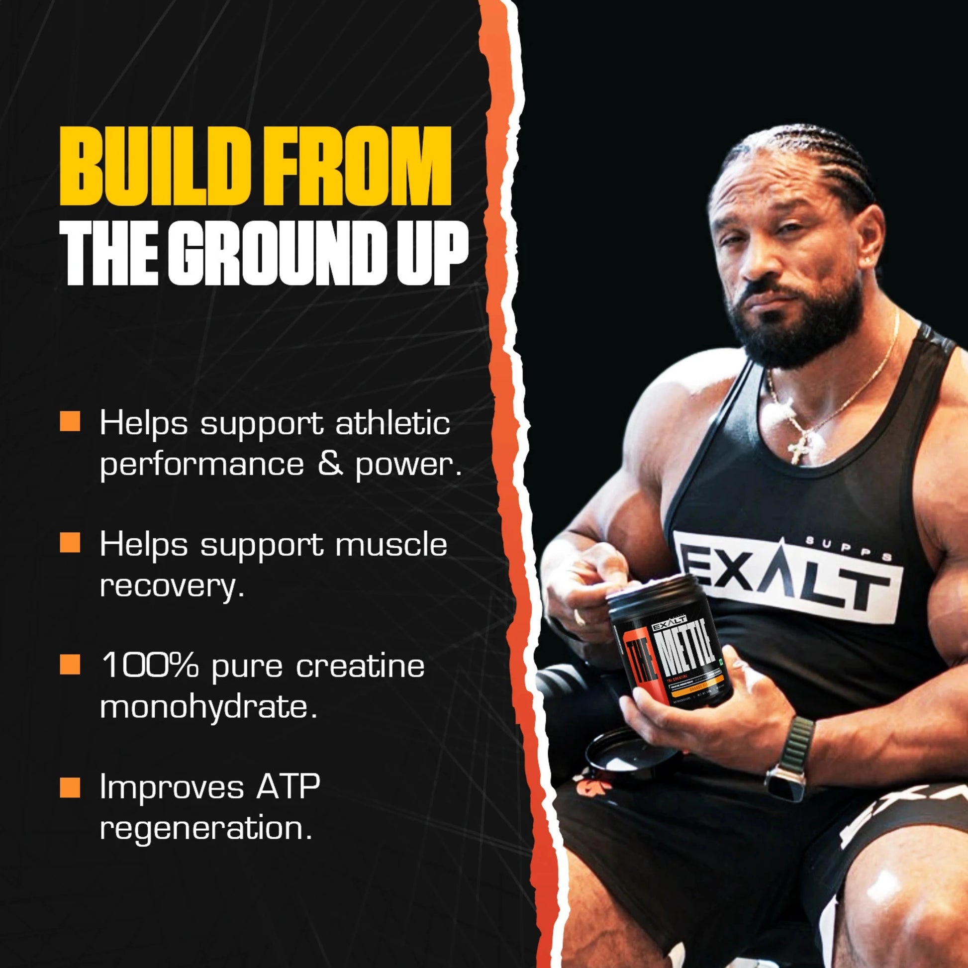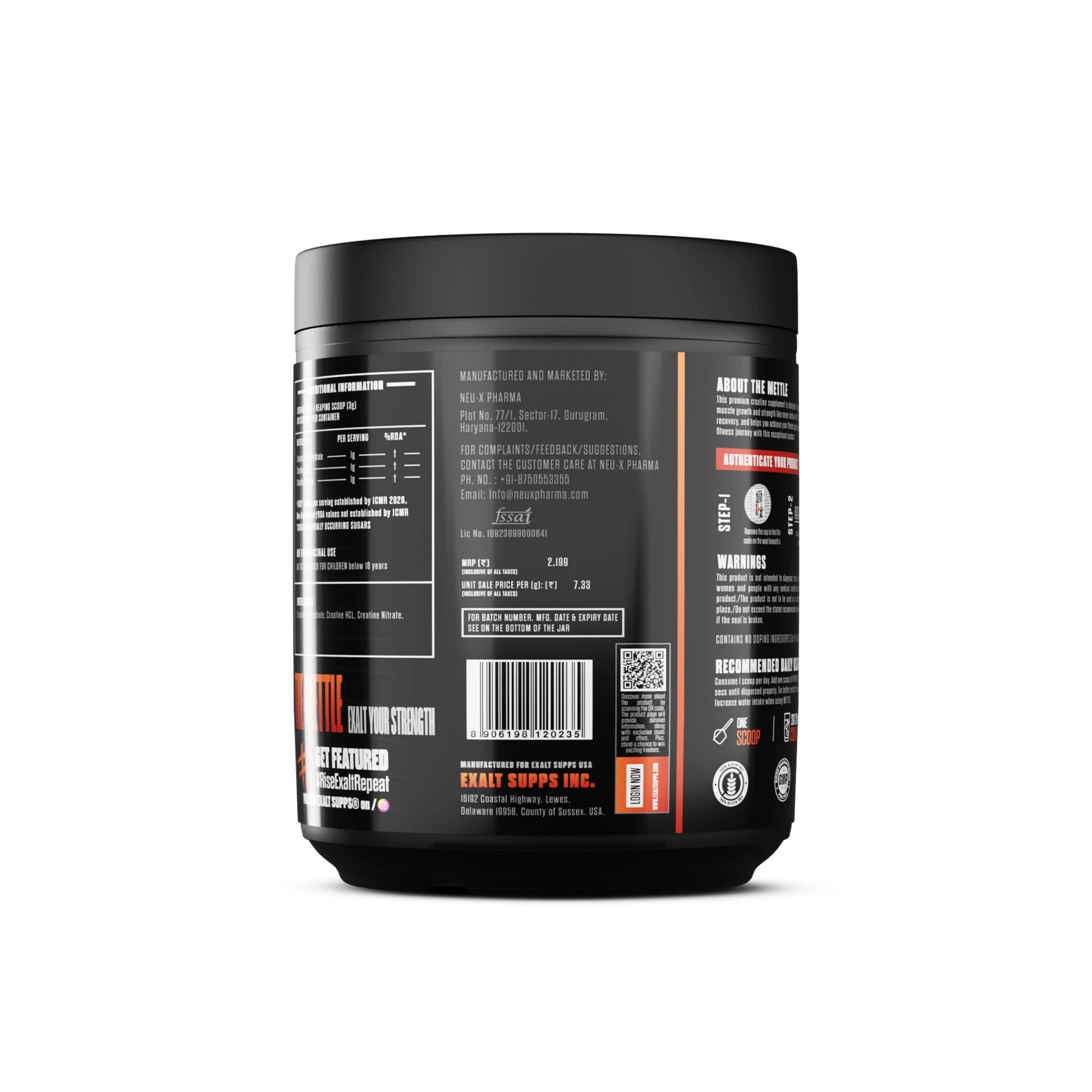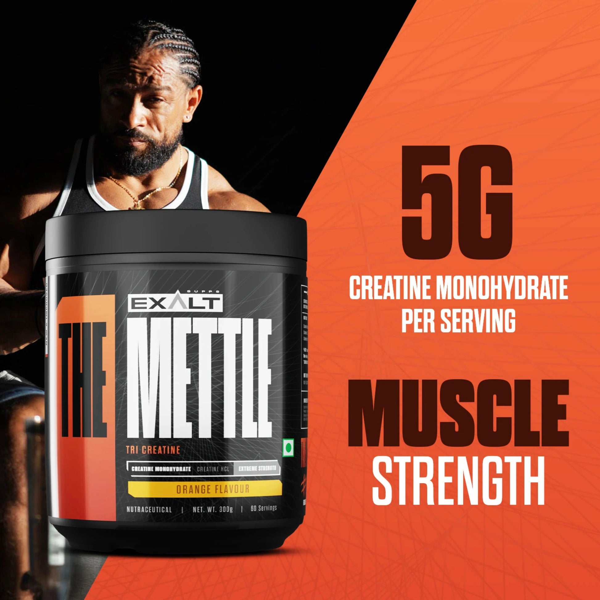 EXALT THE METTLE is a premium tri-creatine blend engineered for athletes and strength trainers who want to push their performance limits. It contains Micronized Creatine Monohydrate, a well-researched compound known for supporting energy production, strength, and muscle volume.