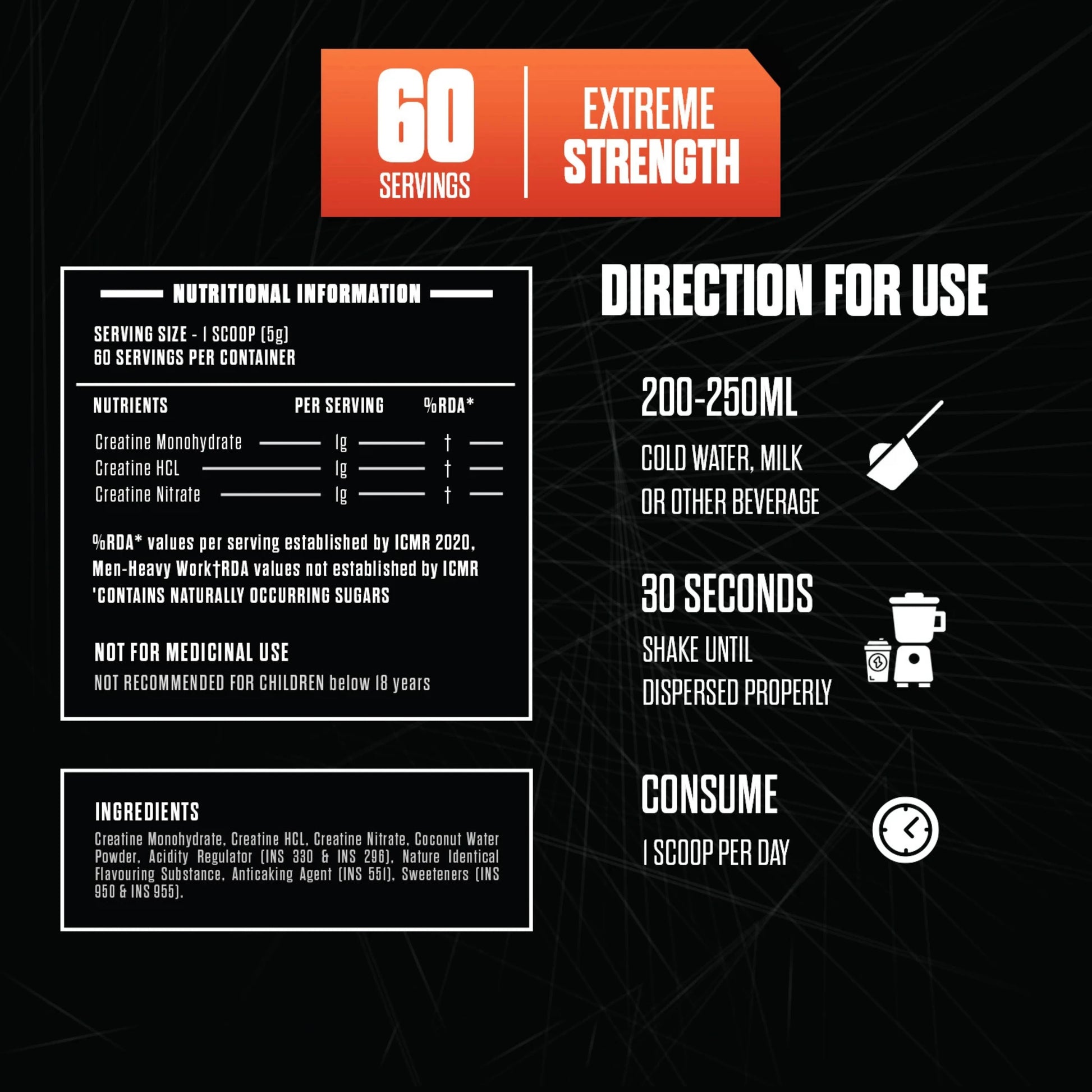 3g Micronized Creatine Monohydrate per serving