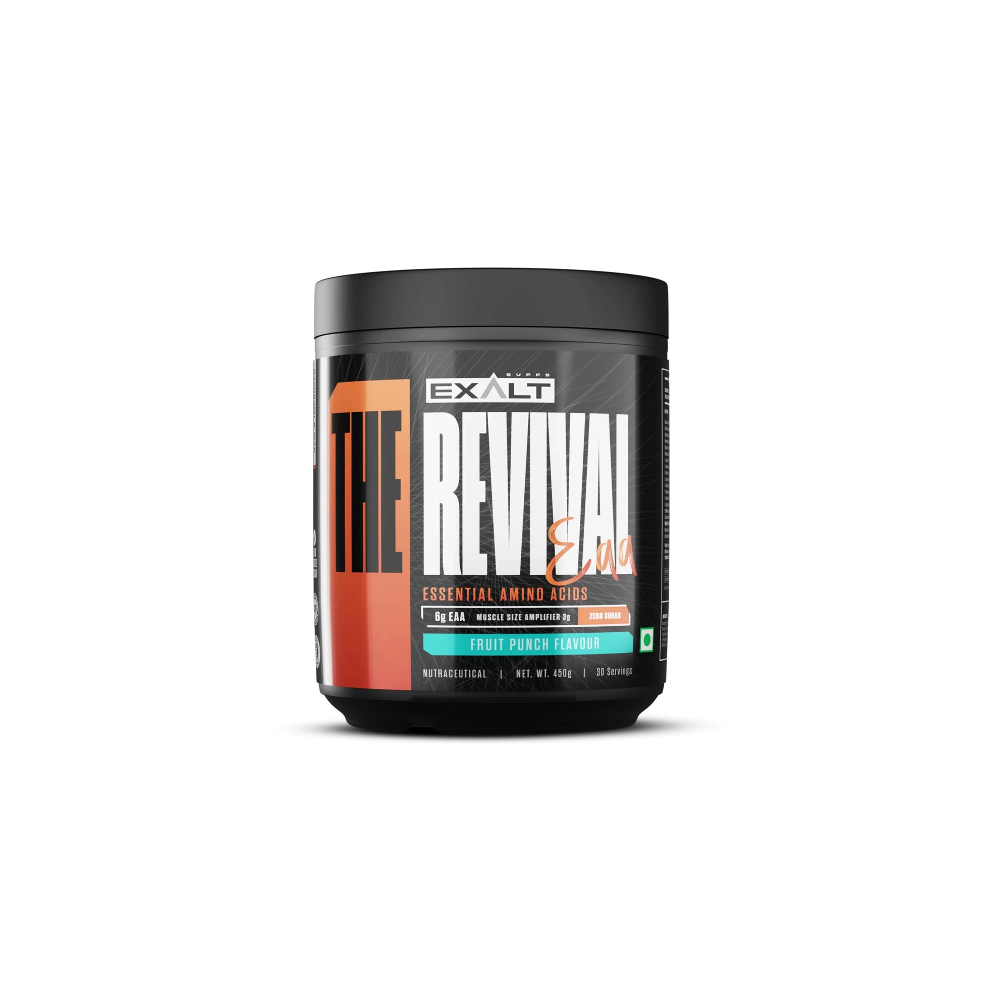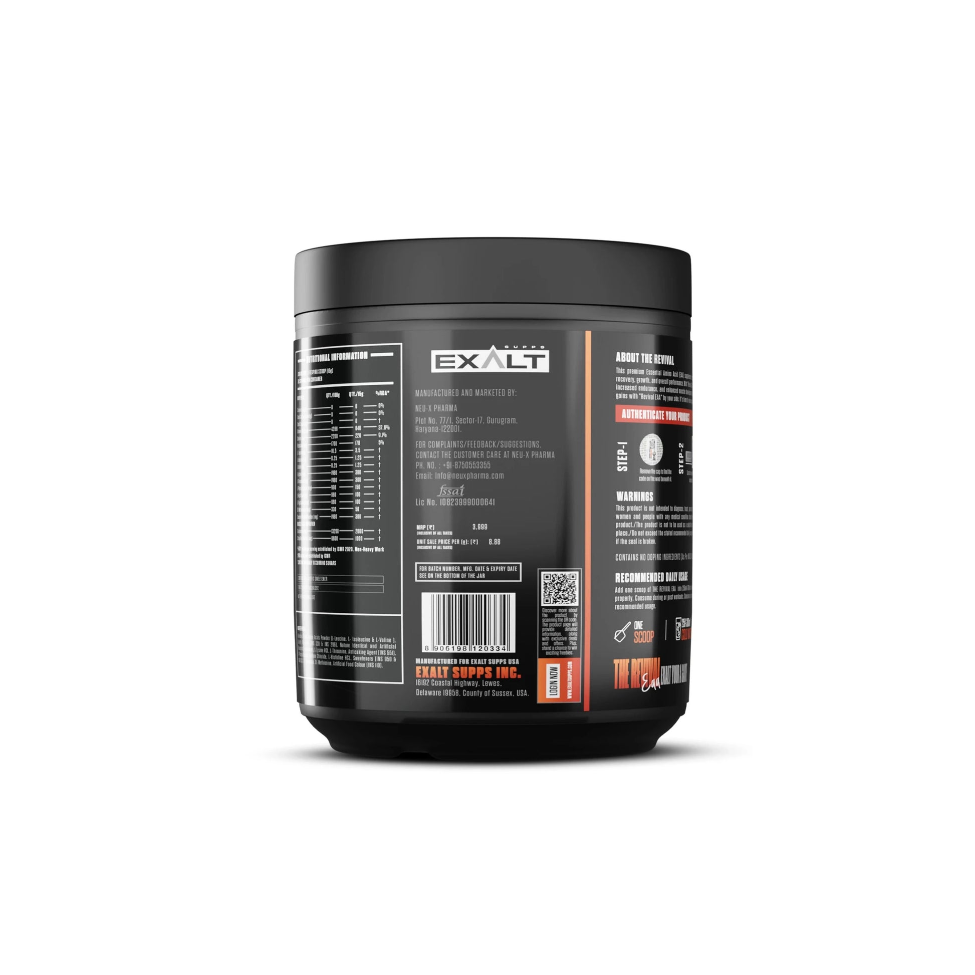 Exalt The Revival EAA is a high-quality essential amino acid supplement crafted to fuel intense training sessions, support lean muscle growth, and elevate performance. With 6000mg of EAAs and 3000mg of a muscle size amplifier, this product is designed to aid athletes in achieving faster recovery, greater endurance, and optimal muscle function.