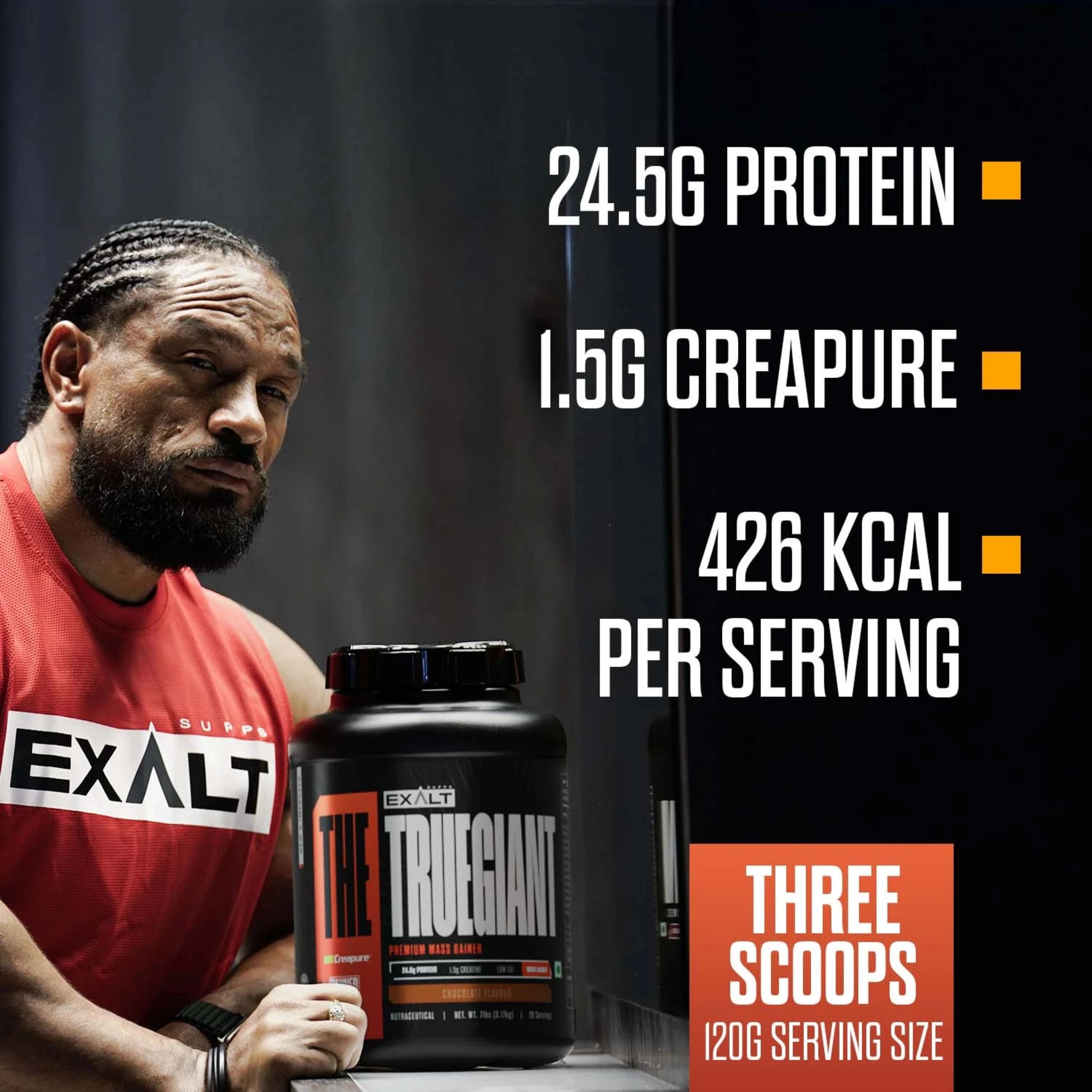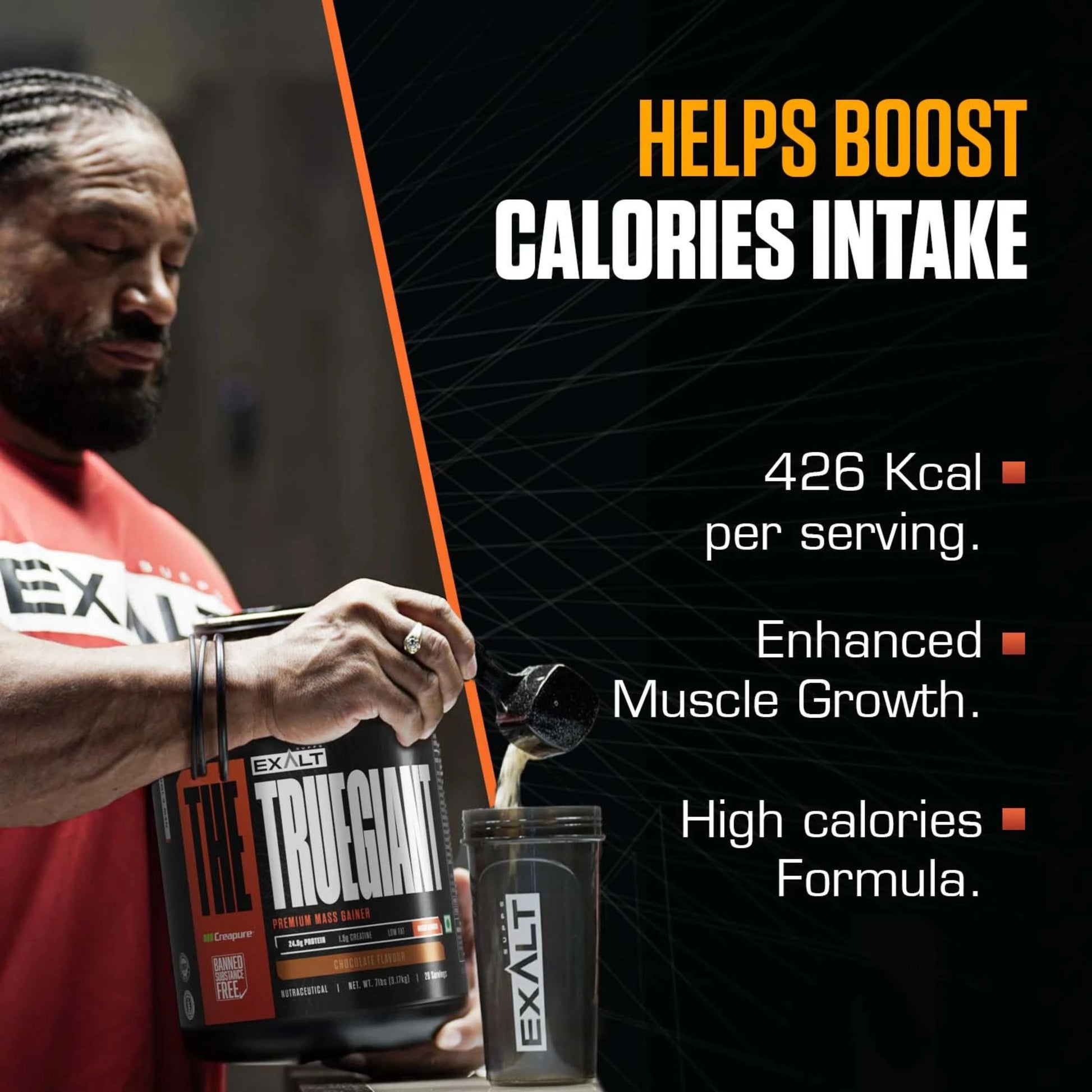 EXALT THE TRUEGIANT is a premium mass gainer designed to support lean muscle mass development, ideal for individuals aiming to bulk up effectively. Formulated with high-quality protein and complex carbohydrates, it fuels your body with the necessary nutrients to gain size and strength.