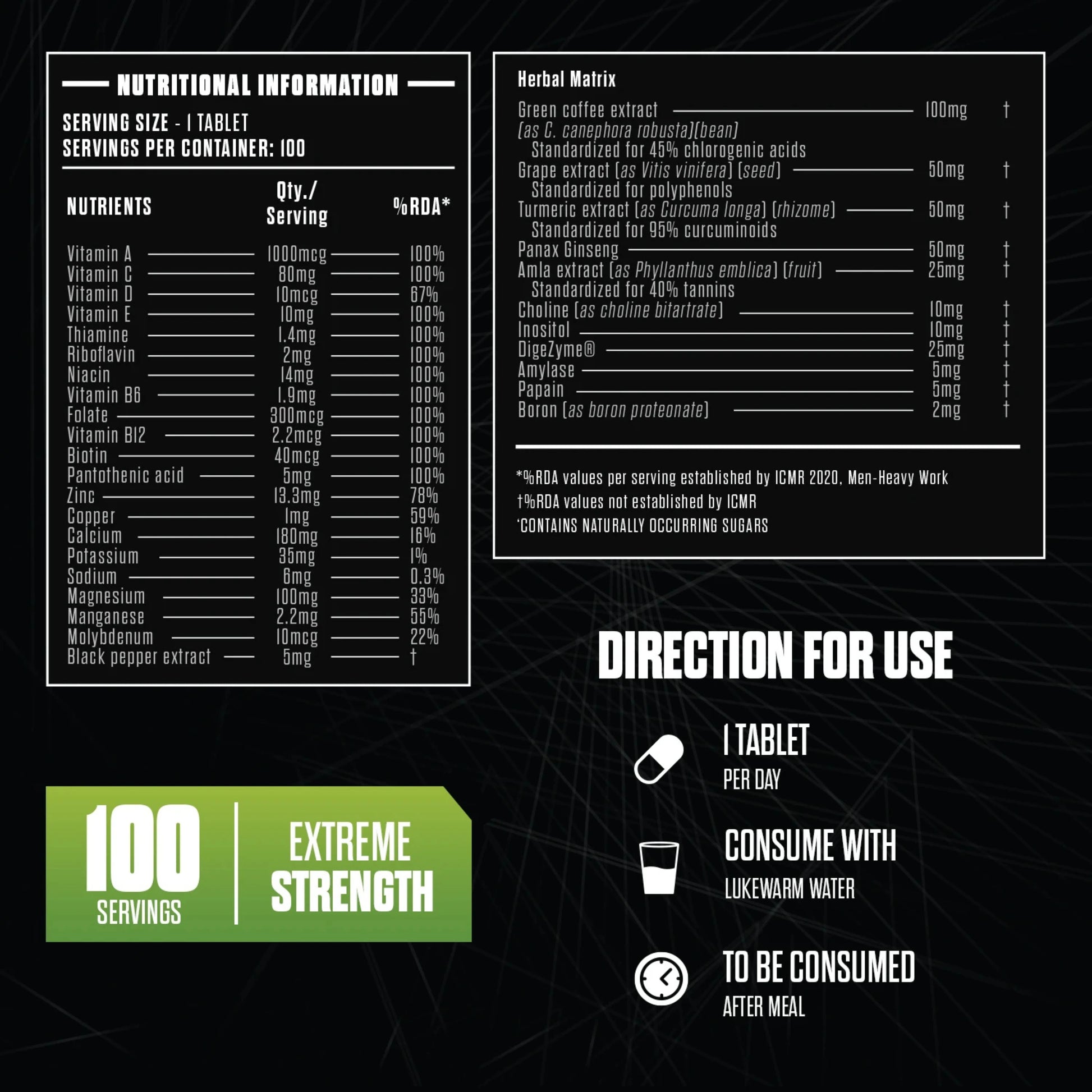 Strong bones and muscles are crucial for overall physical performance. With a healthy dose of Calcium, Vitamin D, Magnesium, and Phosphorus, this multivitamin helps maintain bone density, supports joint health, and reduces the risk of injuries—especially important as you age.